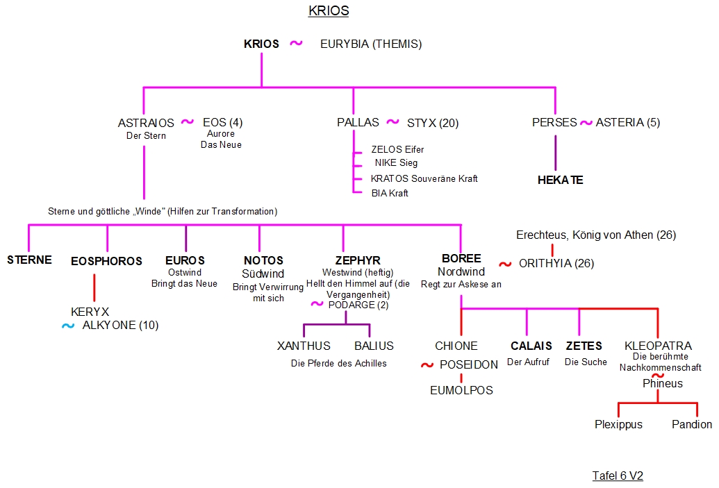 Krius (oder Crius) Stammbaum veranschaulicht das Wirken der göttlichen Kräfte, die die Entwicklung der Menschheit lenken. Er wird auf der Seite “ KRIUS: DIE GROSSEN WINDE BOREAS, NOTUS, ZEPHYRUS UND EURUS, UND DIE GÖTTIN HEKATE“ erklärt.